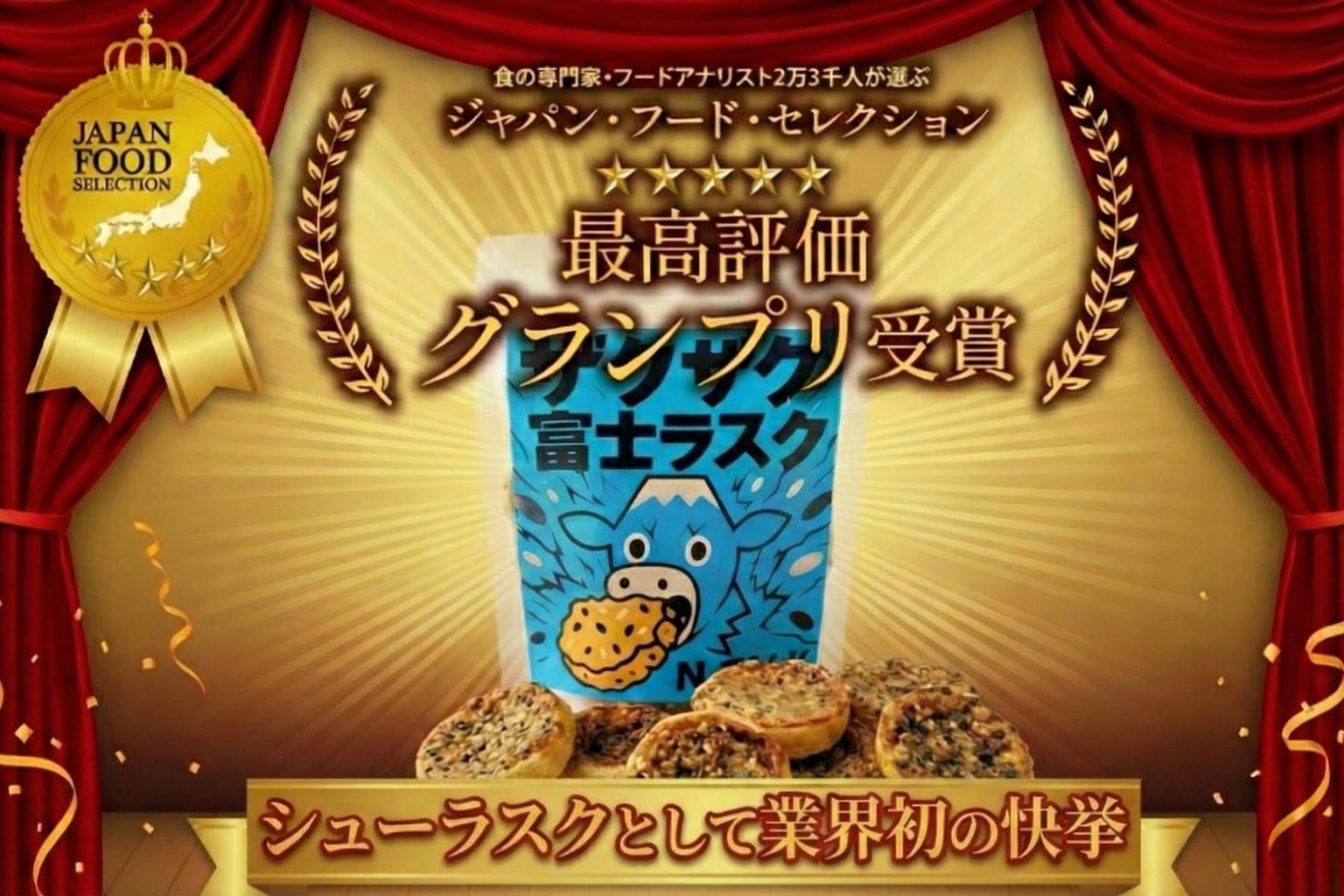 シュークリーム専門店のシュー生地を焼き上げて作る、ザクザク食感の「ザクザク富士ラスク」。 ひと口目から広がる香ばしさと、噛むほどに感じる“旨み”が特長です。静岡素材を中心に、卵・ミルク・だしの旨み・塩味のバランスで、甘さだけに寄らない後引く味に仕上げました。 手土産、差し入れ、コーヒーやお茶のお供に。 ★商品の特長(こだわり) ザクザク・ガリッとした食感:シュー生地由来の軽さと、焼き込みによる硬質な歯ごたえ 香ばしさと旨み:焼きの香りに、だし由来のコクを重ねて“食べ飽きない甘さ”へ 素材の輪郭が出る設計:卵のコク、ミルクのまろやかさ、塩のキレで味が締まる こんな方におすすめ 食感が強い焼菓子が好き 甘いだけのラスクだと物足りない 静岡らしい手土産を探している *アレルゲン:小麦・卵・乳・胡麻・大豆 *内容量:6枚(1袋) *賞味期限:製造日より60日 *保存方法:直射日光・高温多湿を避けて保存