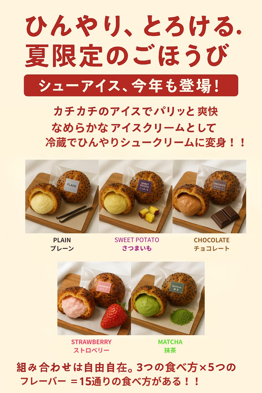 3つの食べ方 × 5つのフレーバー=15通りの楽しさ!